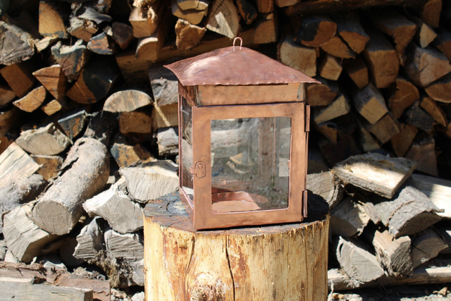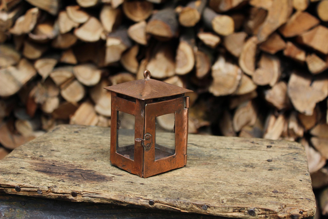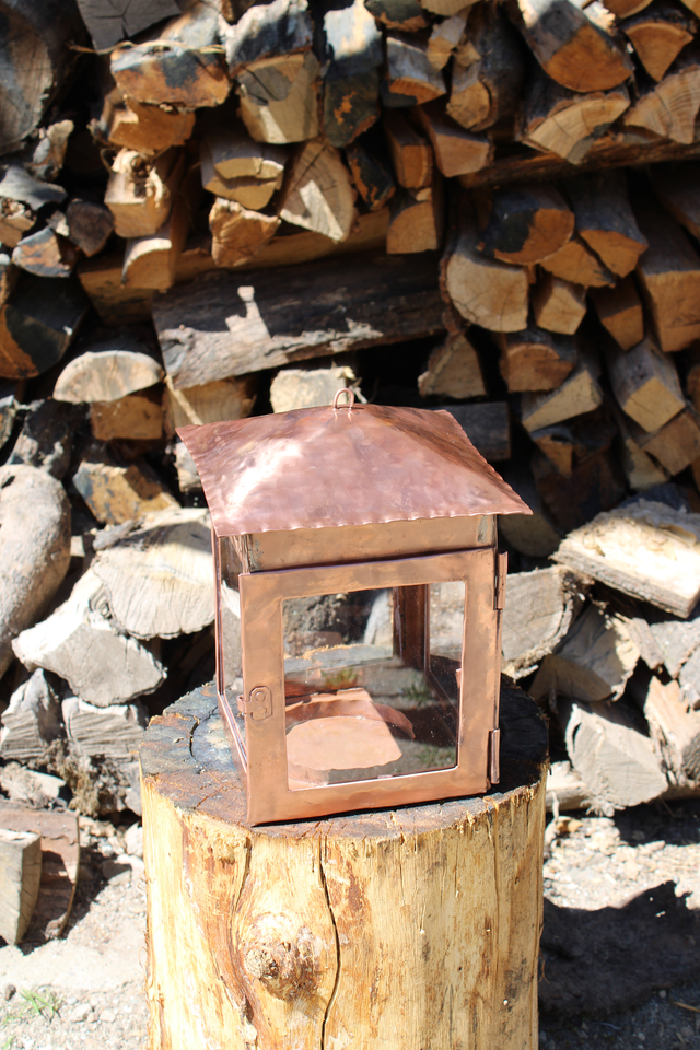 This lantern has been produced following ancient copper manufacturing arts without using any machine or mold. Starting from a simple sheet the copper is finely hammered to obtain this solid item that guarantees resistance and durability. The handmade processing ensures uniqueness to the artefact that can't be perfectly imitate. This lantern can be used for its original purpose with a candle, it is suitable to give a rustic mark to your dinners both in summer and in winter.