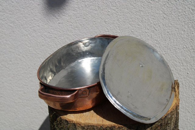 This pot, entirely handcrafted according to the ancient art of coppersmithing, is a unique piece.
