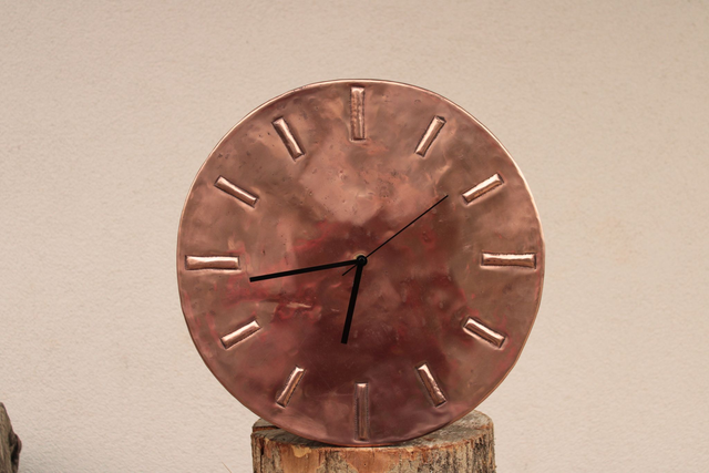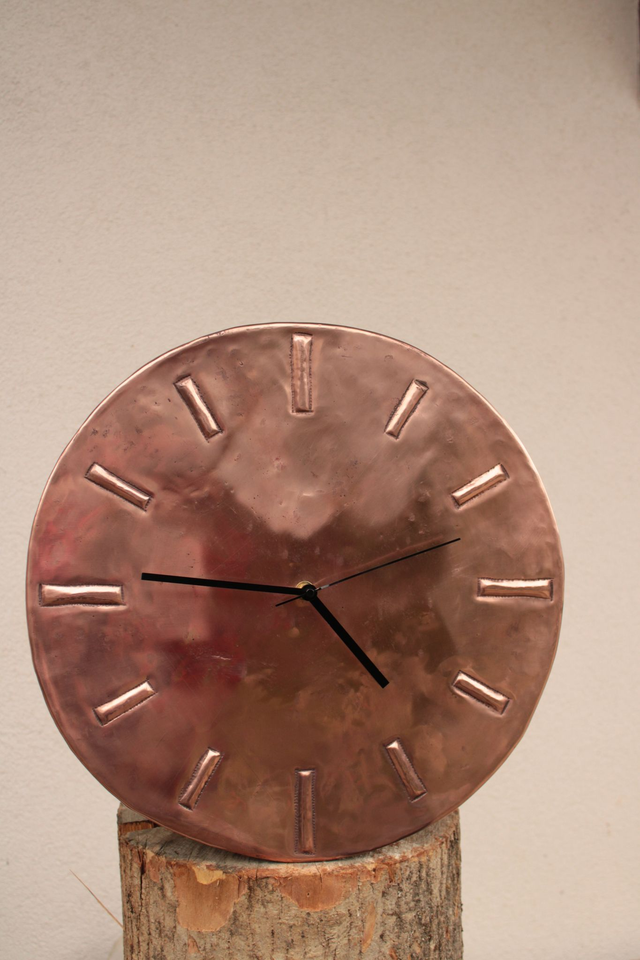 Enhance your space with our modern round copper wall clock, where unique craftsmanship meets timeless design. A hand-crafted clock with refined details that add a touch of elegance to any space. Perfect for modern interiors, this stunning piece not only tells the time but also serves as a striking focal point.